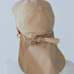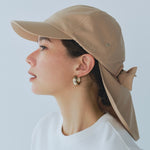 This feminine cap features yori logo embroidery and an elegant back ribbon detail. The detachable sun visor provides convenient protection on sunny days. Crafted with a smooth, natural texture and water-repellent finish, it's perfect for beach wear. The high-performance fabric offers superior UV protection and quick-drying capabilities. The streamlined silhouette with rounded crown provides a flattering fit, while the elastic back and adjustable ribbon ensure comfortable wear.