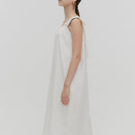 Beschreibung (DE): Dieses Mini-Kleid ist aus leichtem, transparentem "Shirocon" Jacquard-Stoff mit weichem, natürlichem Fall gefertigt. Es besticht durch elegante Schulterbänder und eine leicht ausgestellte Silhouette für einen raffinierten Look. Ein seitlicher Reißverschluss gewährleistet einfaches Anziehen, und ein Rückenschlitz ermöglicht es, das Kleid als Tunika über Hosen zu stylen. Es harmoniert perfekt mit der Kamille-Serie für ein koordiniertes Outfit.