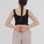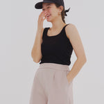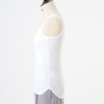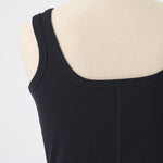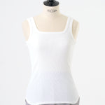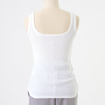Description (EN): This square-neck tank top elegantly frames the décolleté, creating a fresh and balanced silhouette. Crafted from 100% cotton ribbed fabric, it boasts a natural sheen and soft texture that feels as good as it looks. With its sleek, minimalist design free of distractions, it pairs effortlessly with any bottoms and serves perfectly as a layering piece under knits or cardigans. A versatile wardrobe essential, this tank top offers endless styling possibilities you won’t want to miss.