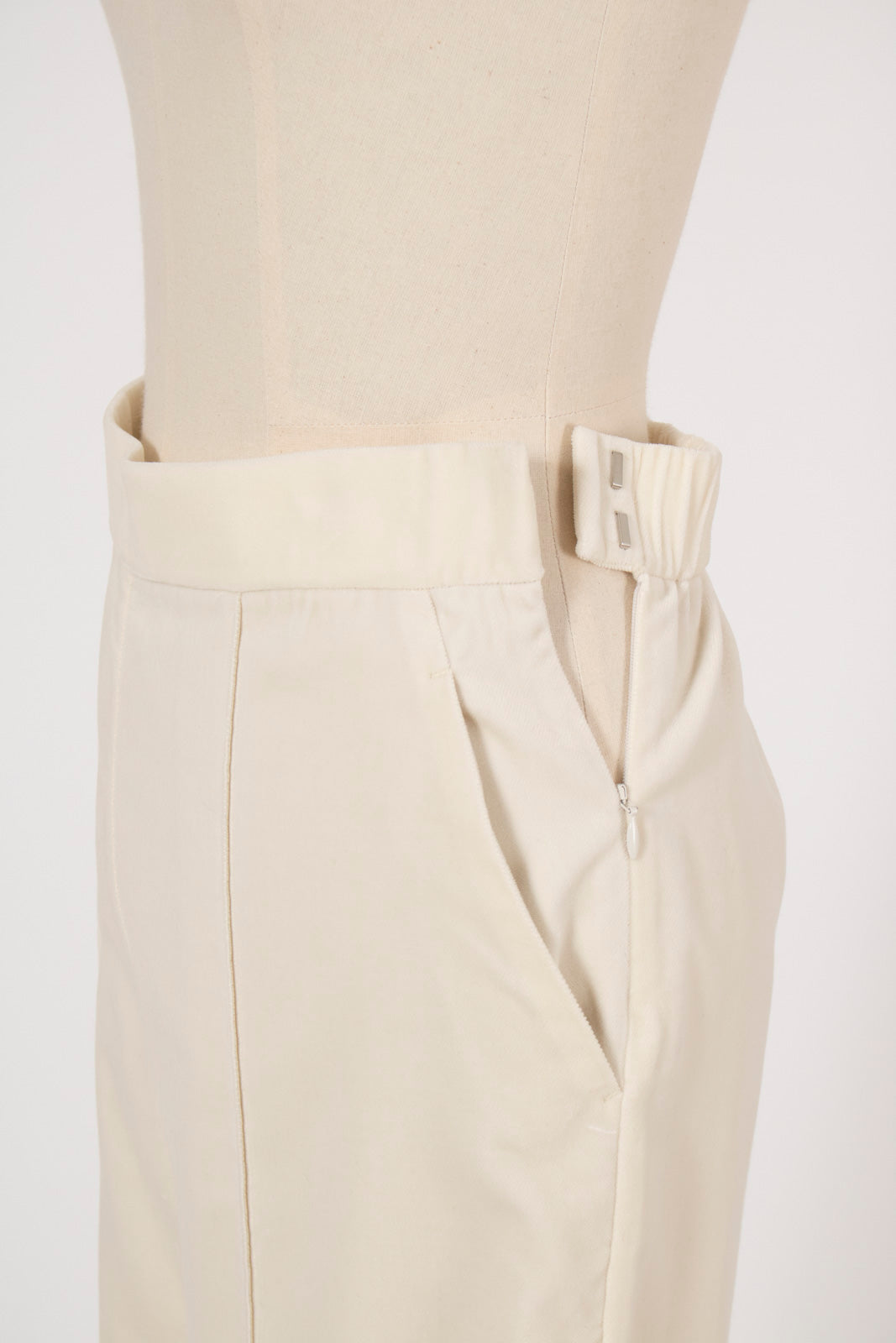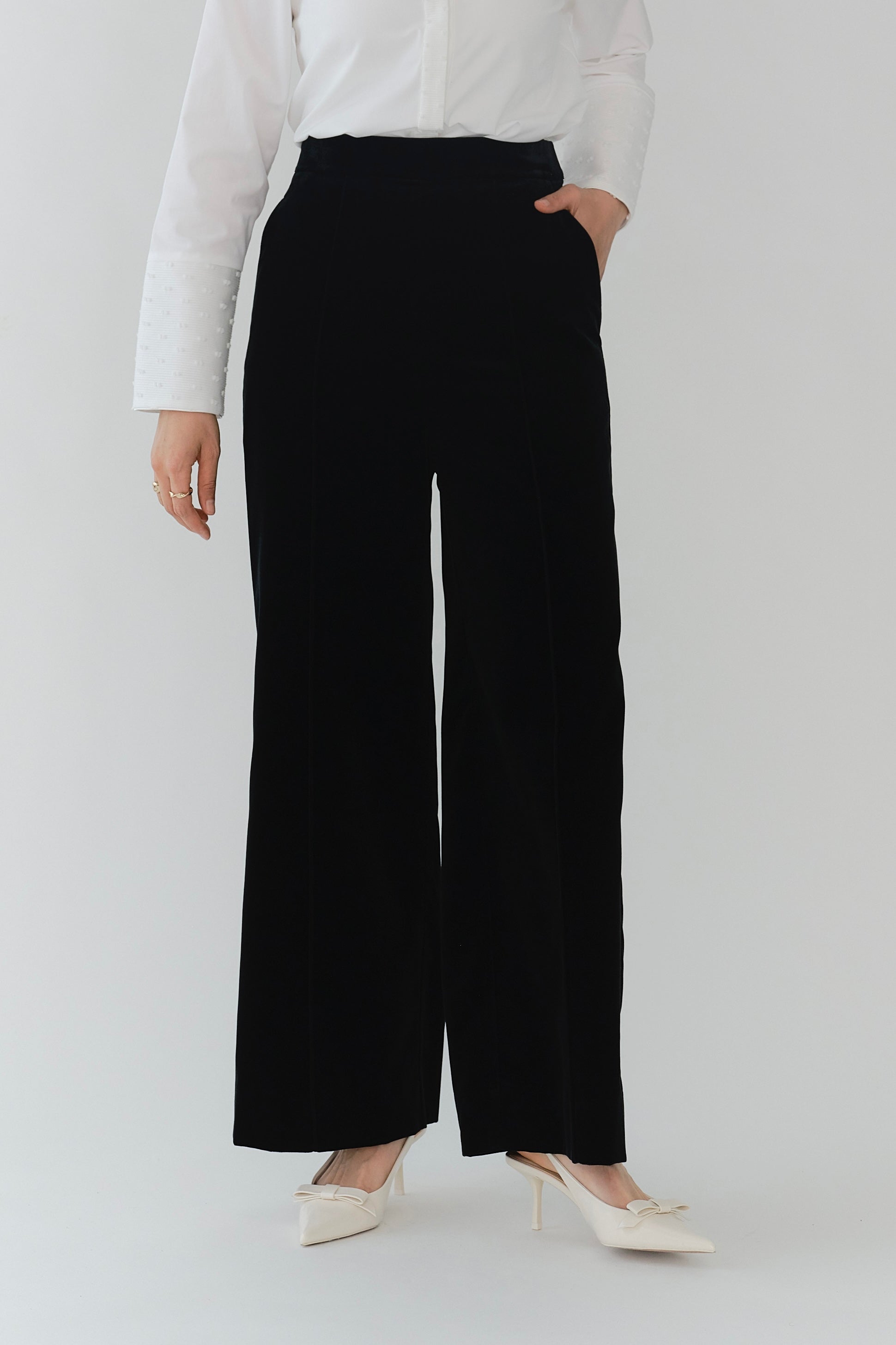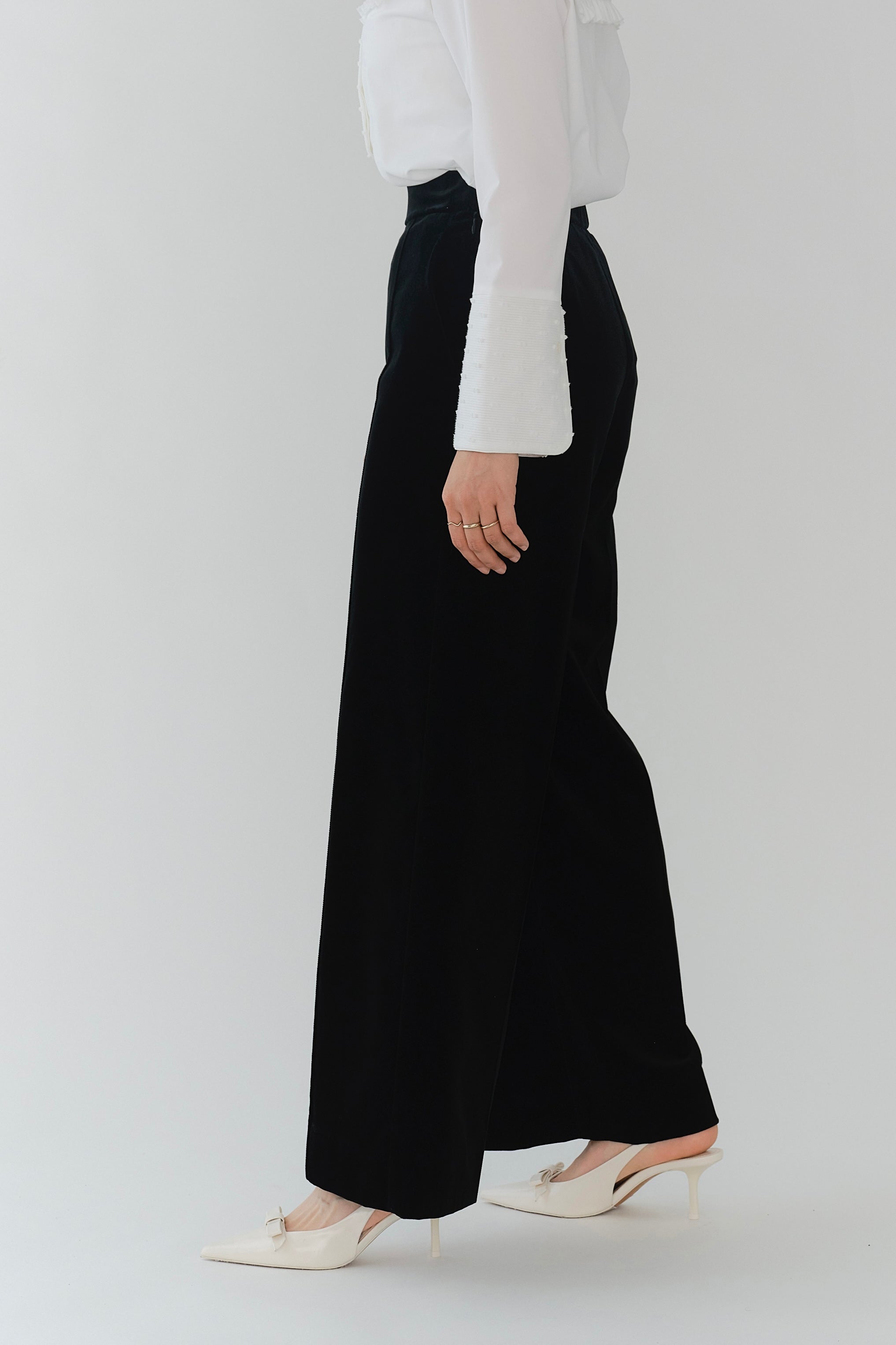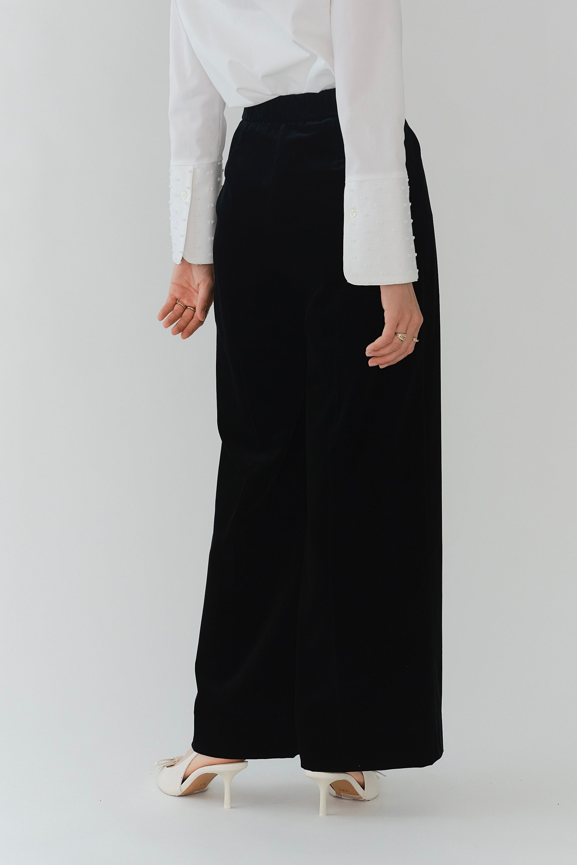 Luxurious wide pants for adults, crafted from premium Japanese cotton velvet. Features an elegant sheen that captures soft light beautifully and a rich, lustrous pile. Despite the substantial fabric weight, it offers a remarkably light and smooth hand feel. Finished with center stitching for a refined, dignified silhouette. The wide waistband serves as an accent while the side zipper and back elastic combine visual elegance with exceptional comfort. Pair with the matching jacket for a gorgeous set-up style, or combine with shirts and blouses for a polished look perfect for special occasions. A special piece that brings a touch of luxury and excitement to even the most ordinary days.
