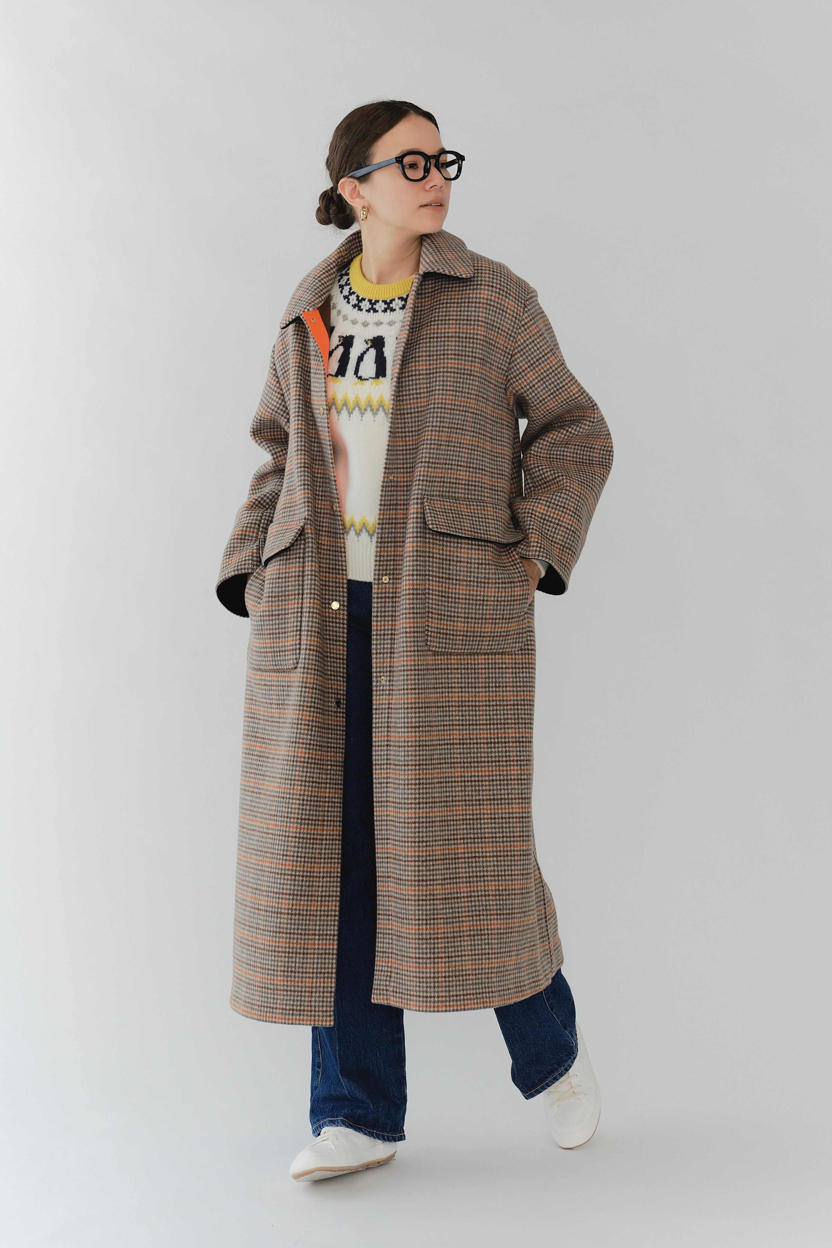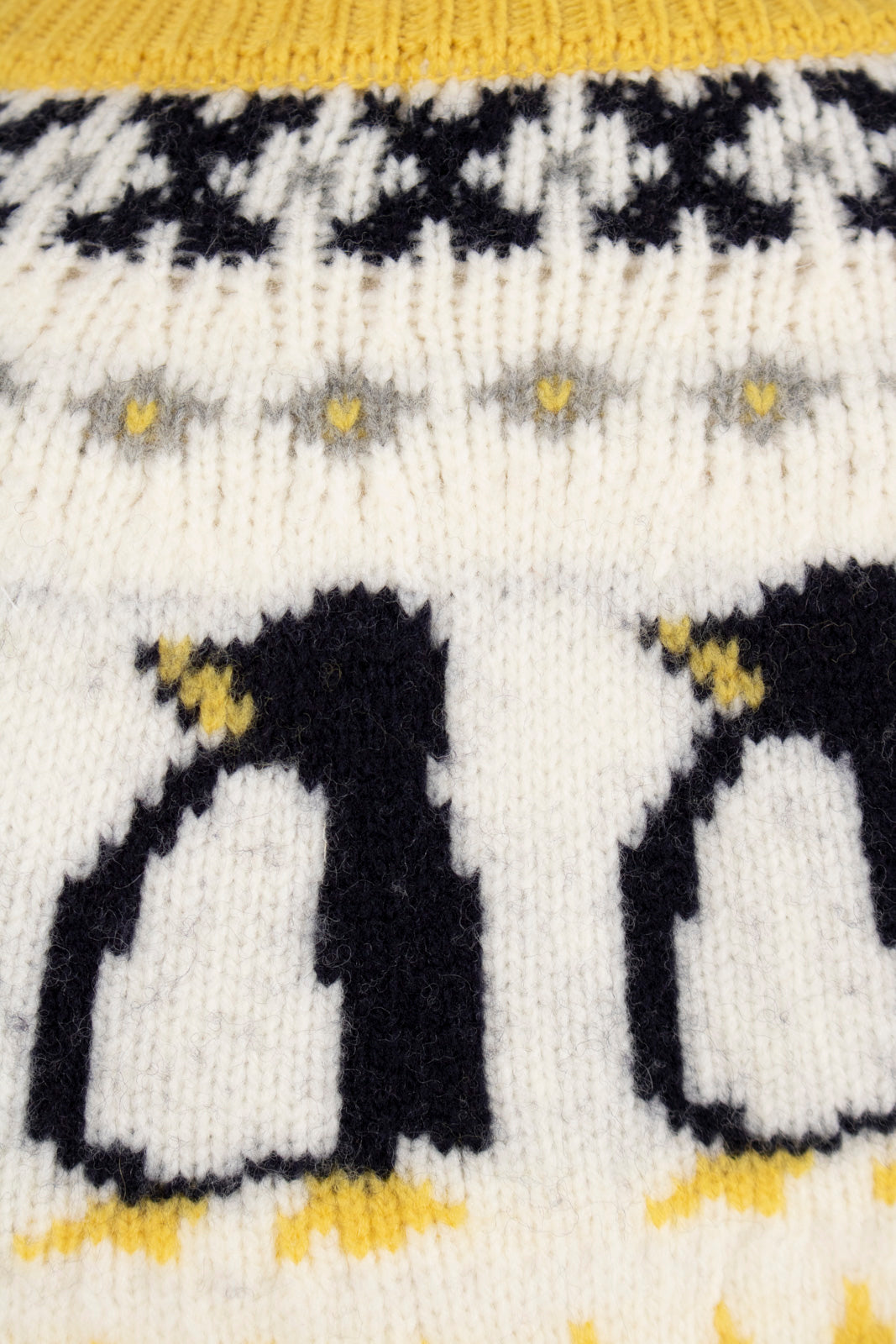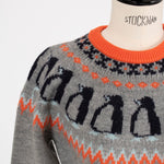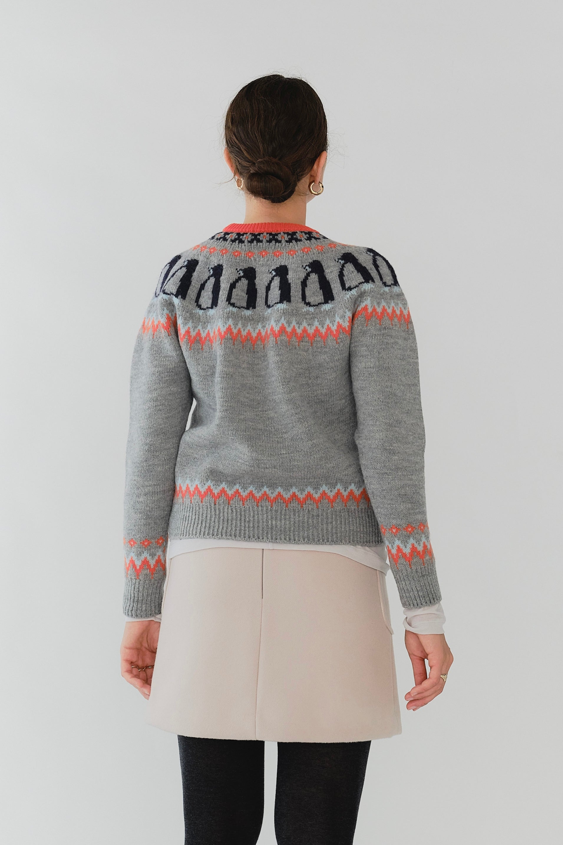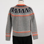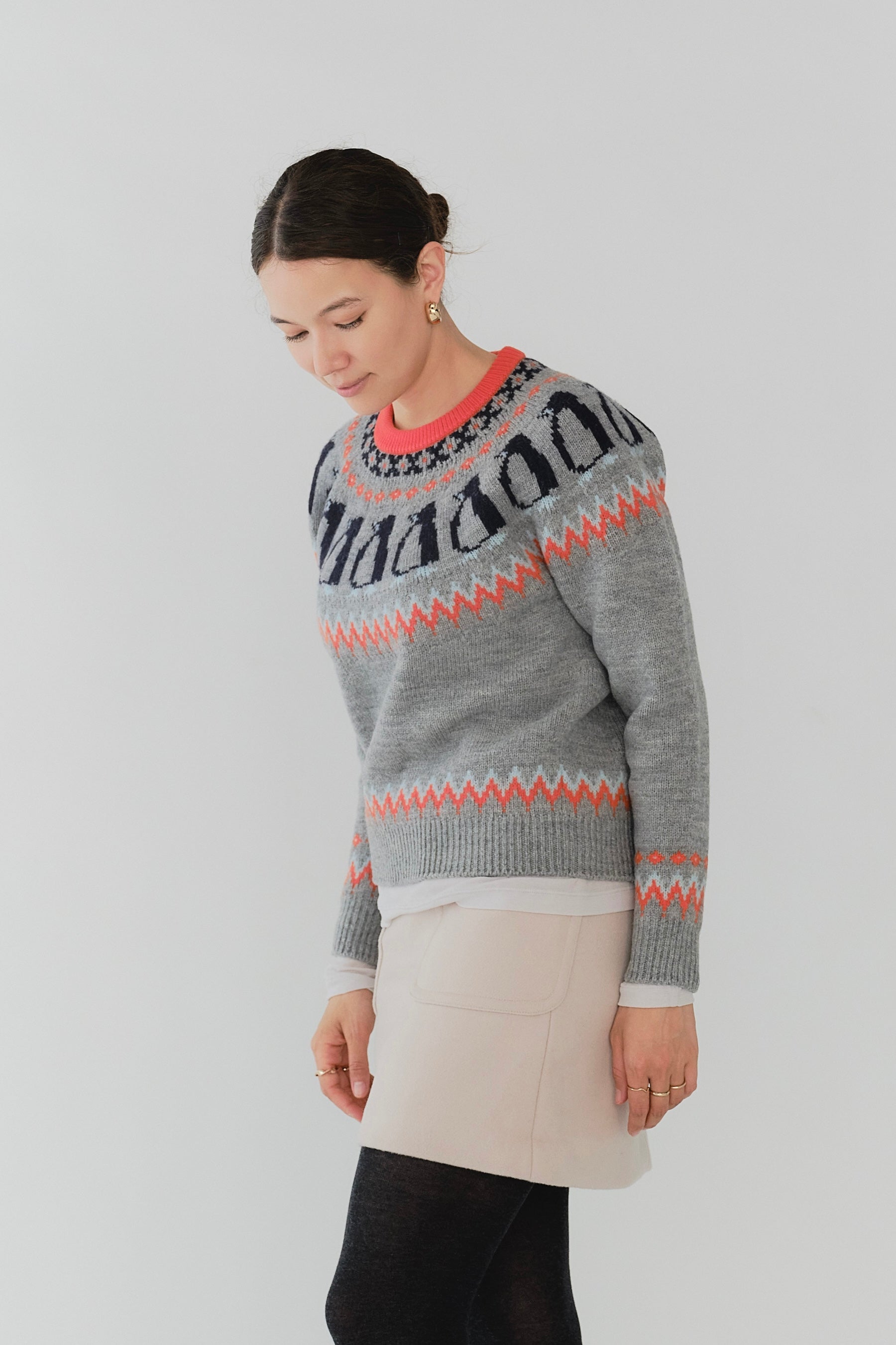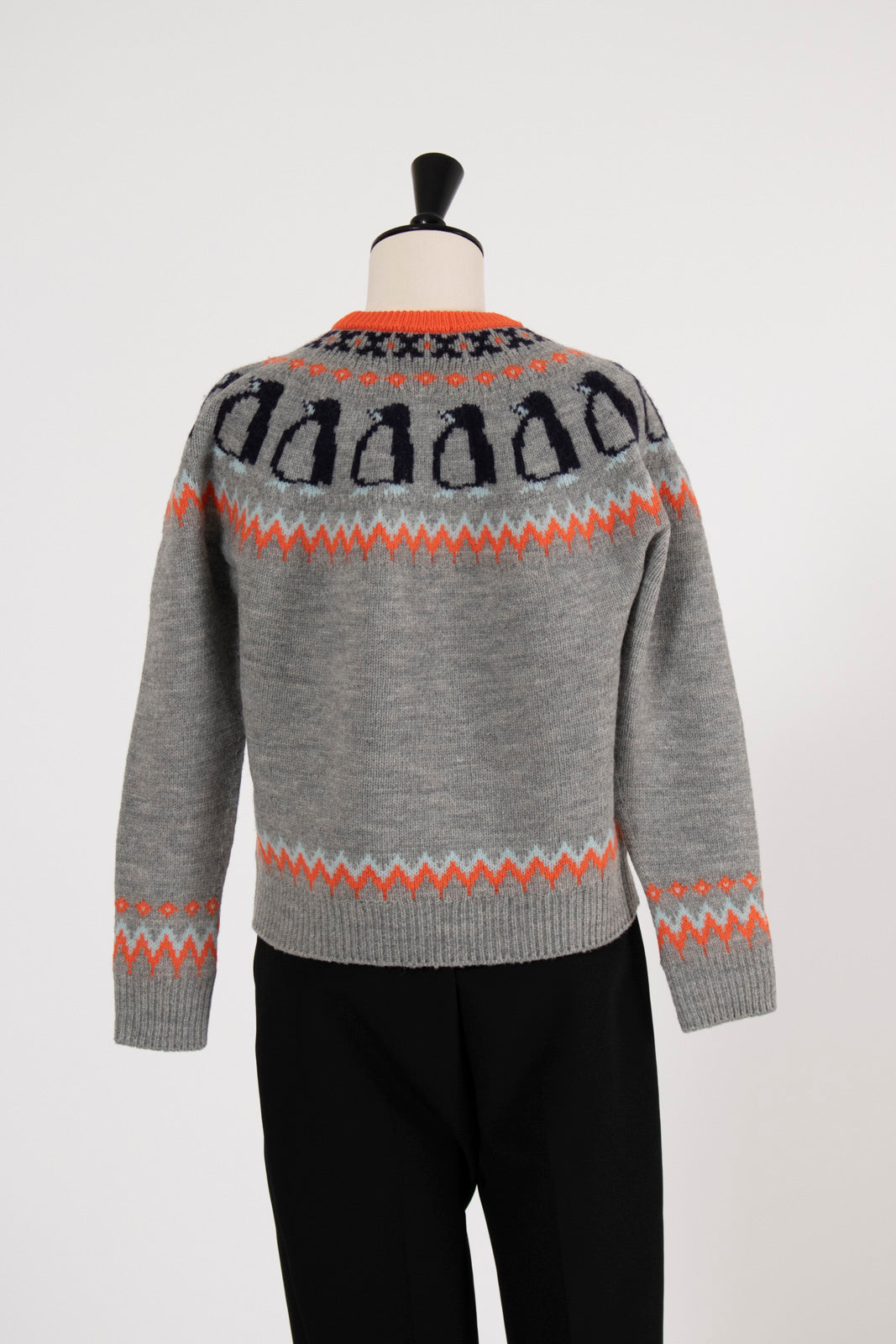 This piece, featuring a playful penguin pattern that wraps all around the front and back, is sure to bring a smile to your face. The exquisite balance of contrasting colors highlights an adult sense of cuteness. Knit using the seamless Whole Garment technique, it offers a fluffy and smooth wearing experience. It comfortably fits the body and achieves a beautiful silhouette from every angle. The material is 100% French wool, resulting in a knit that is soft and light, yet reliably warm. It has a soft, plump, and full hand feel. The design, which serves as a statement piece on its own, adds a touch of playfulness to your autumn/winter coordination. We recommend pairing it with simple bottoms to let the penguin pattern stand out.