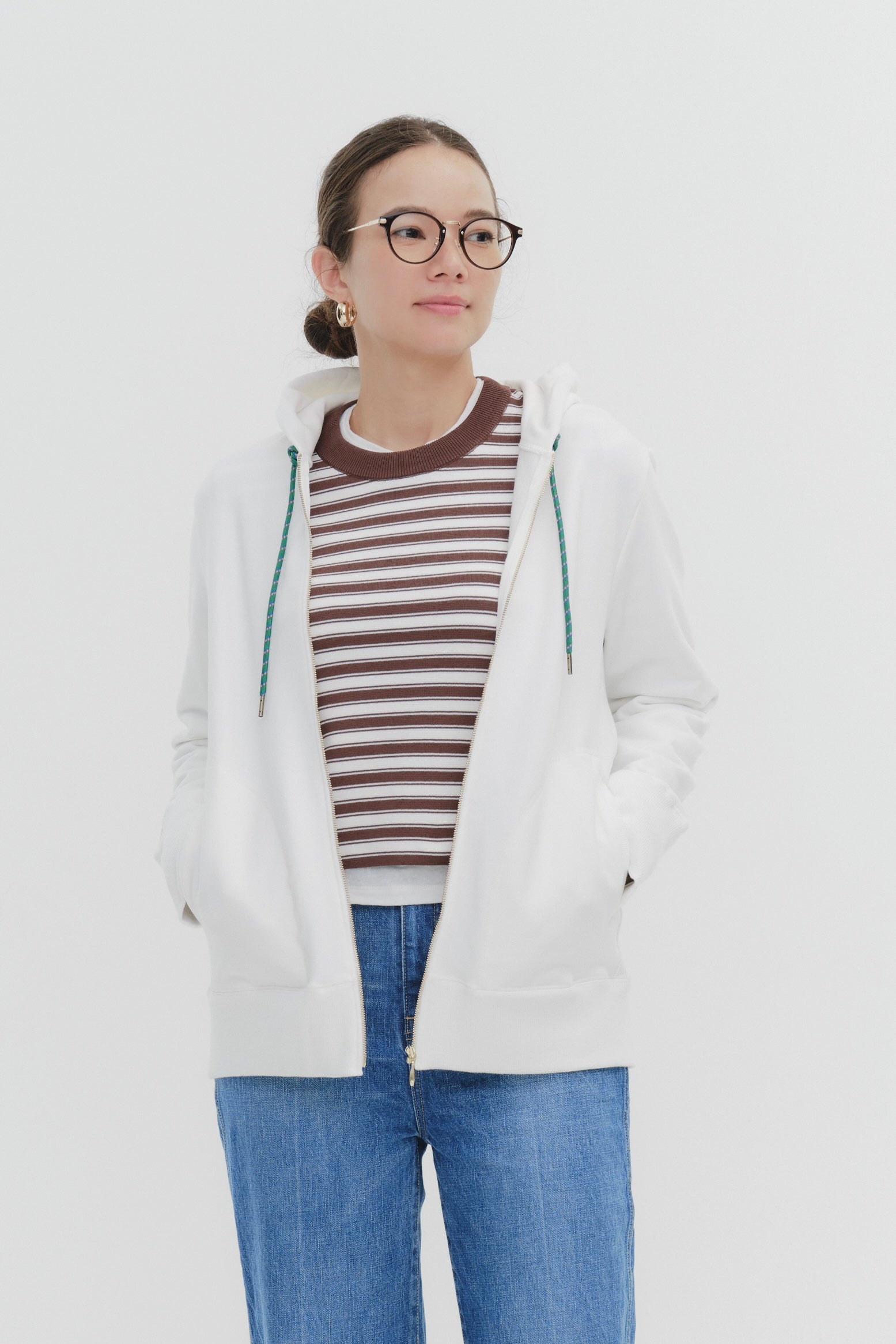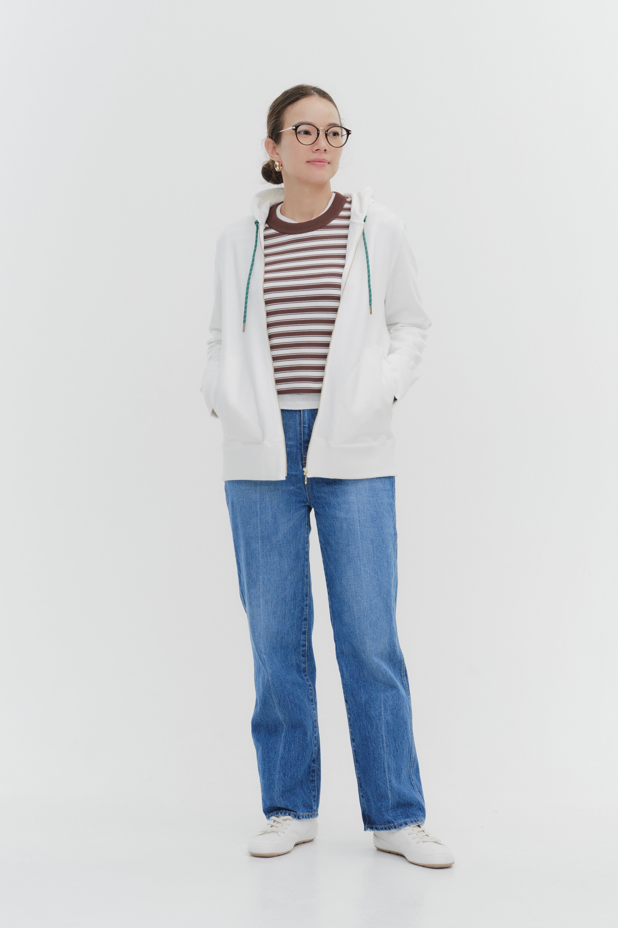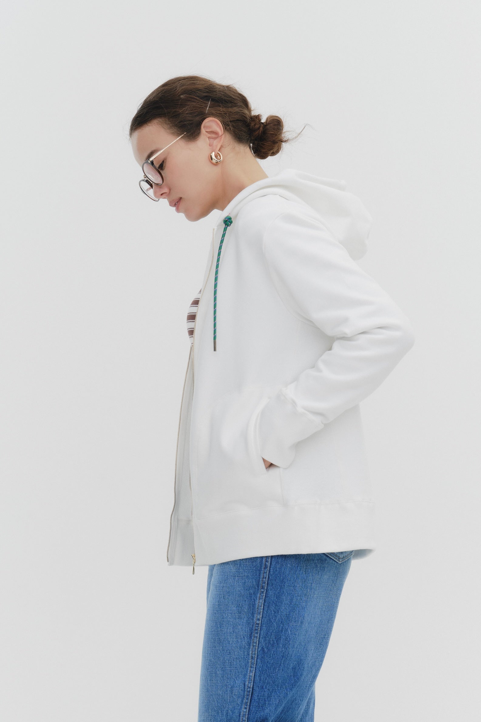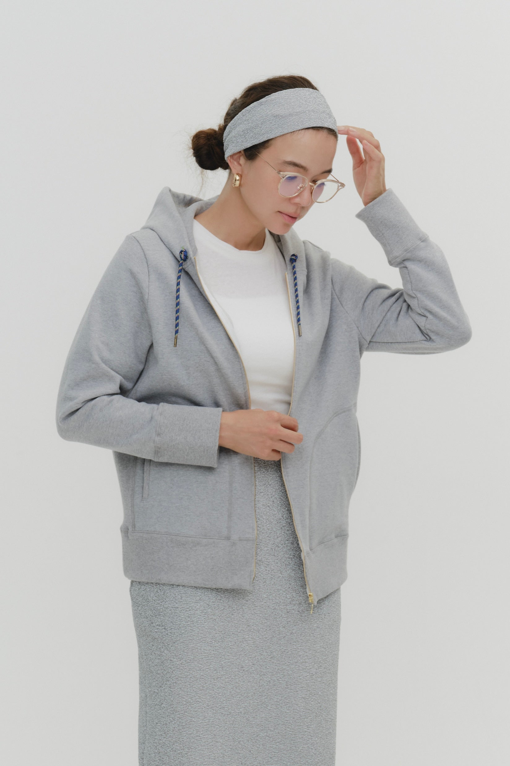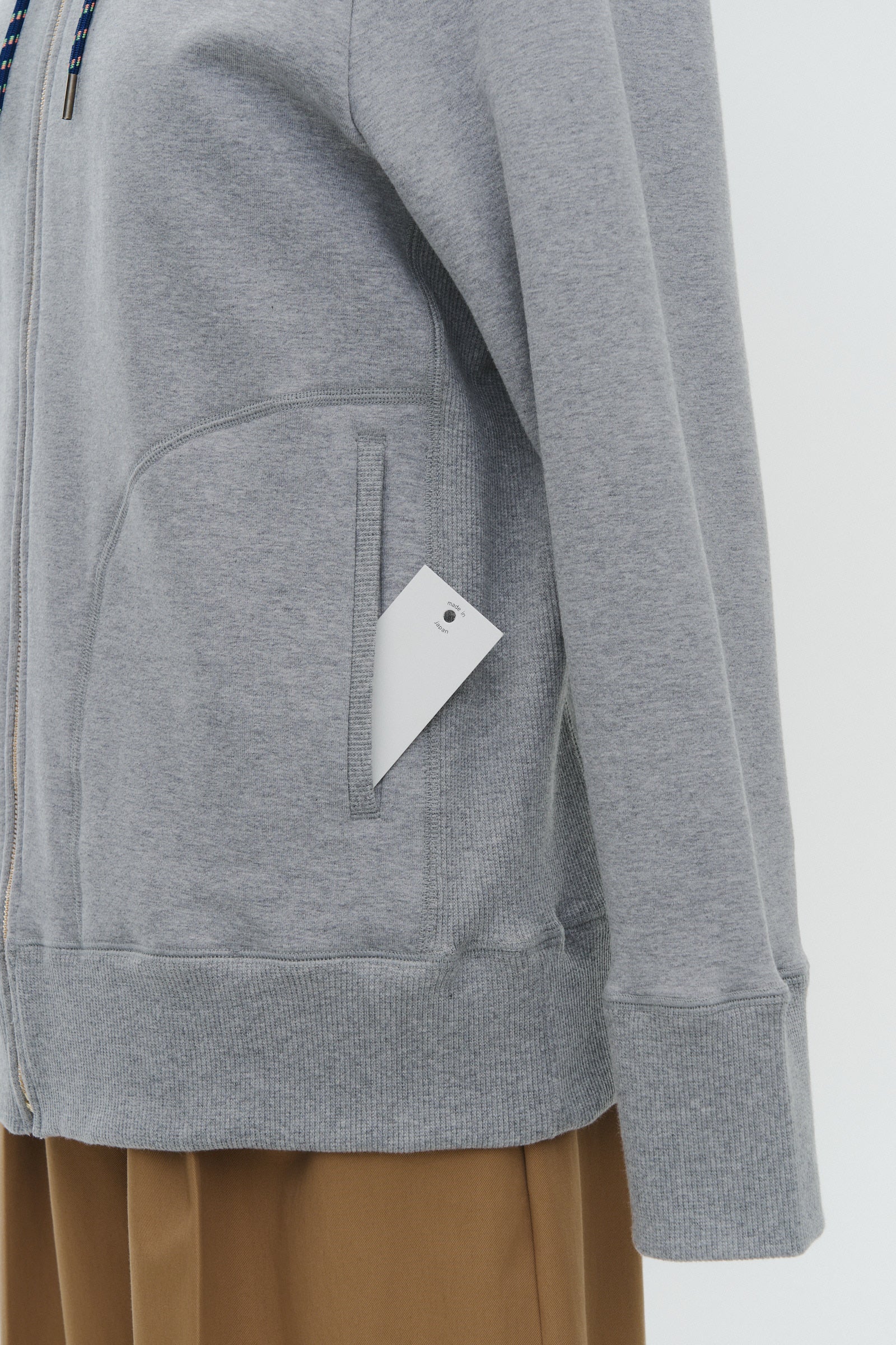 To avoid looking overly casual, the ribbed sides at the waist create a clean silhouette, while the glossy metal zipper adds a touch of sophistication.