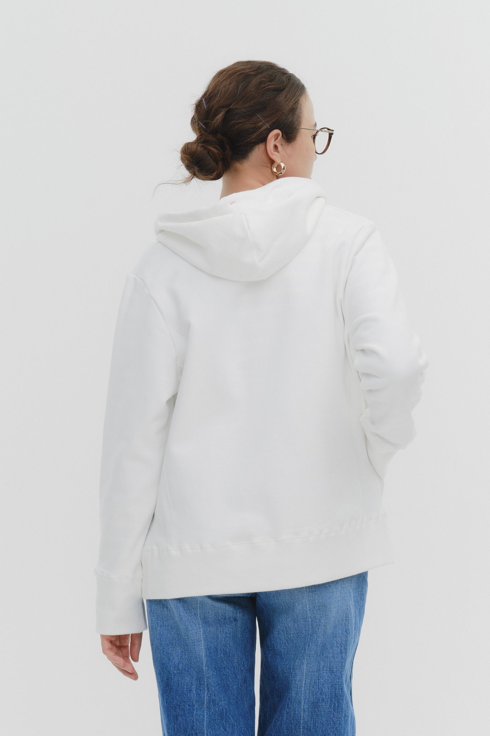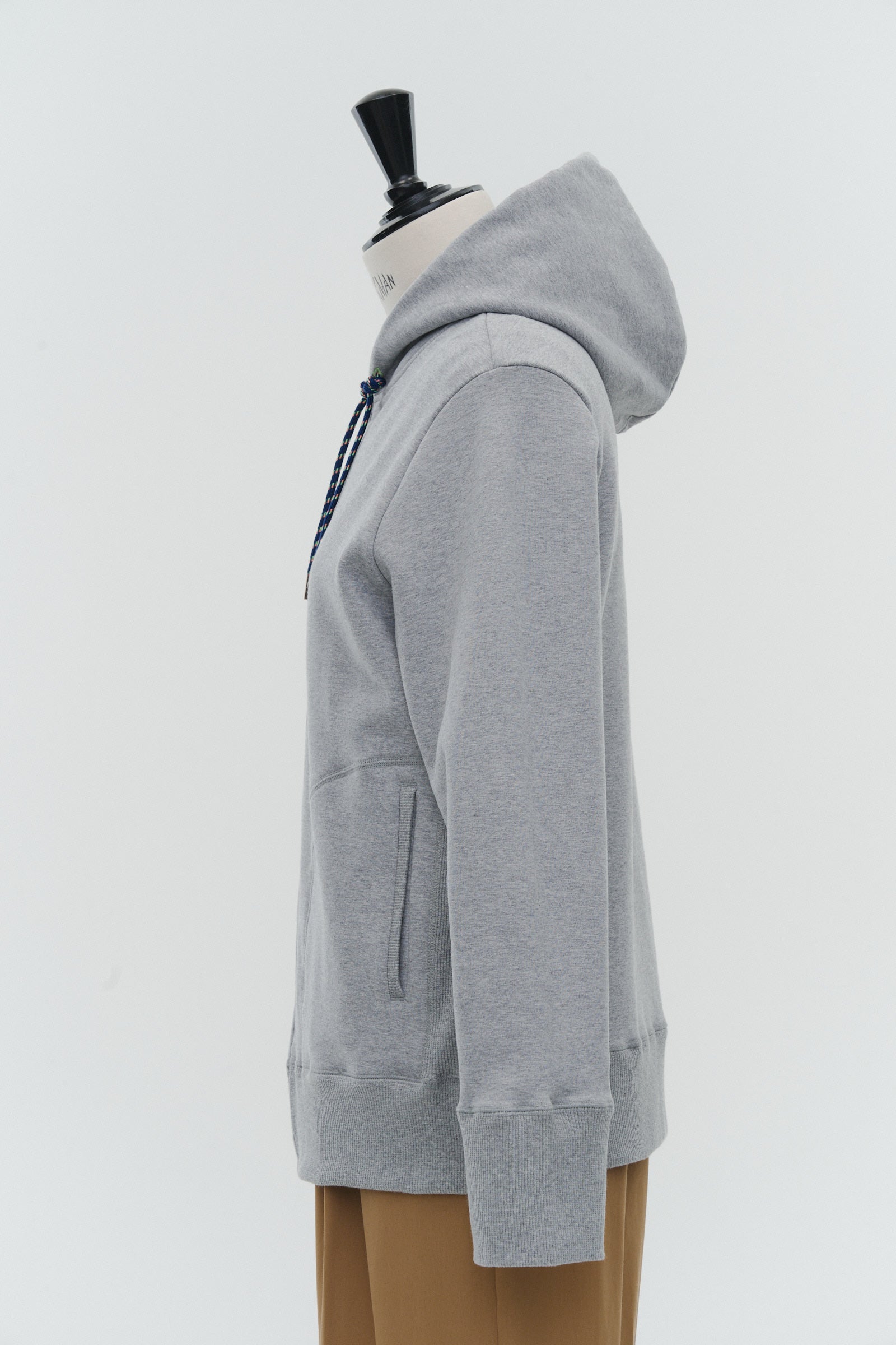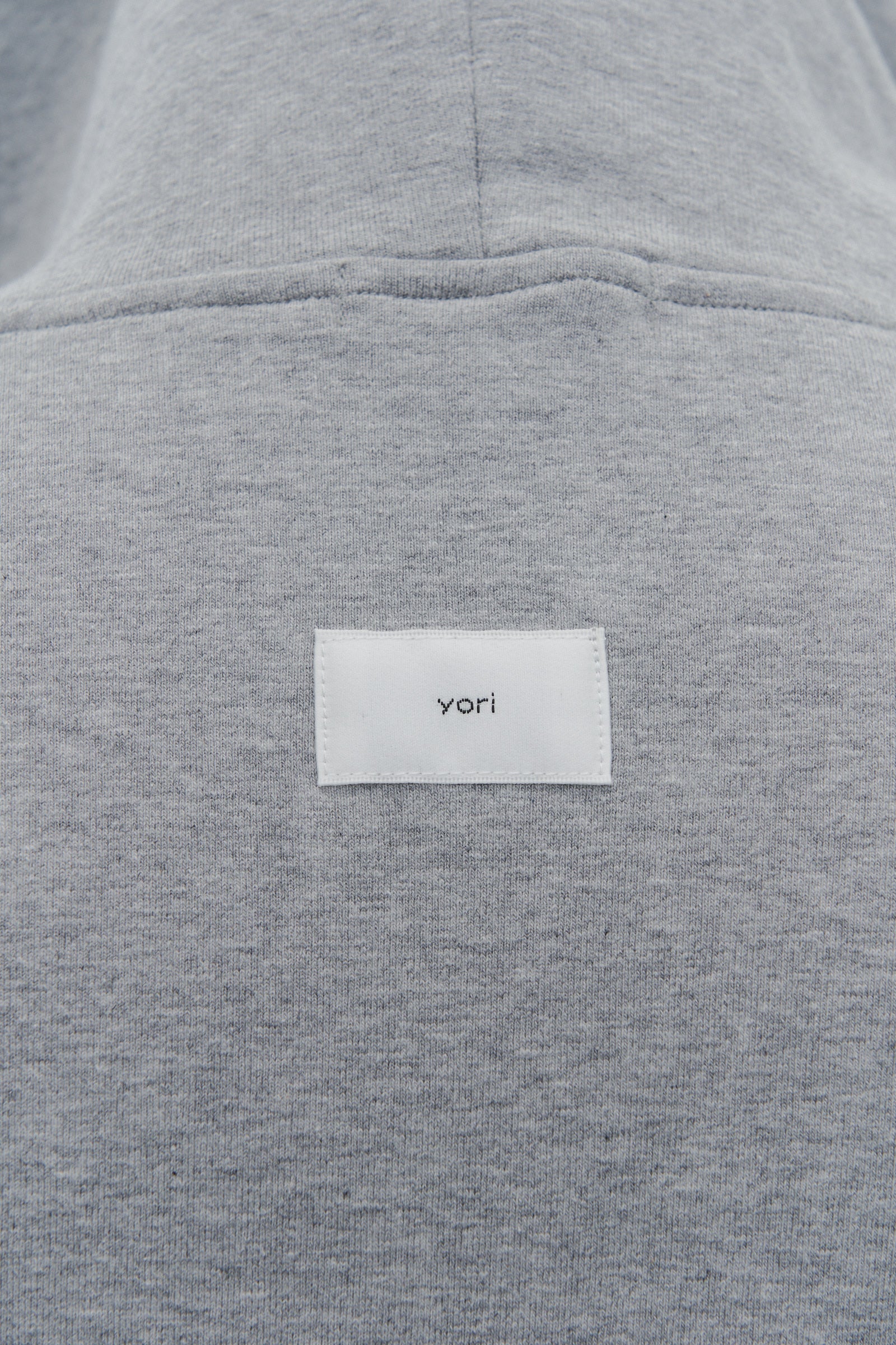 The fabric features a soft and plush texture with a warm, cozy feel, and its stretchability and smooth finish add to its appeal. The mixed-color drawstrings on the hood, contrasting stitch details at the ends, and the Yori name tag on the back provide delightful design highlights.