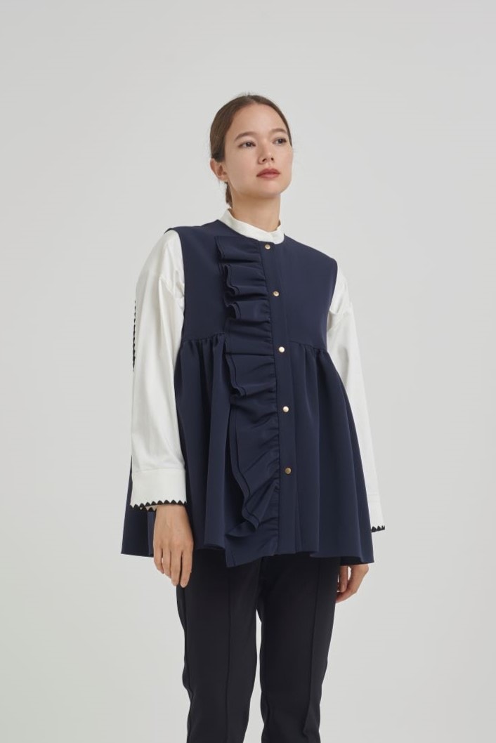 Elevate your everyday style with this frill gilet—just one layer instantly adds a touch of elegance and flair to even the simplest outfit.