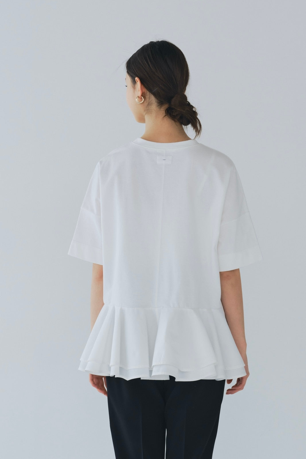 The relaxed fit offers just the right amount of room without clinging to the body, creating a comfortable yet refined look. The back features a subtle hem frill detail that adds a touch of elegance and visual interest to the rear view, transforming a simple design into something truly eye-catching.