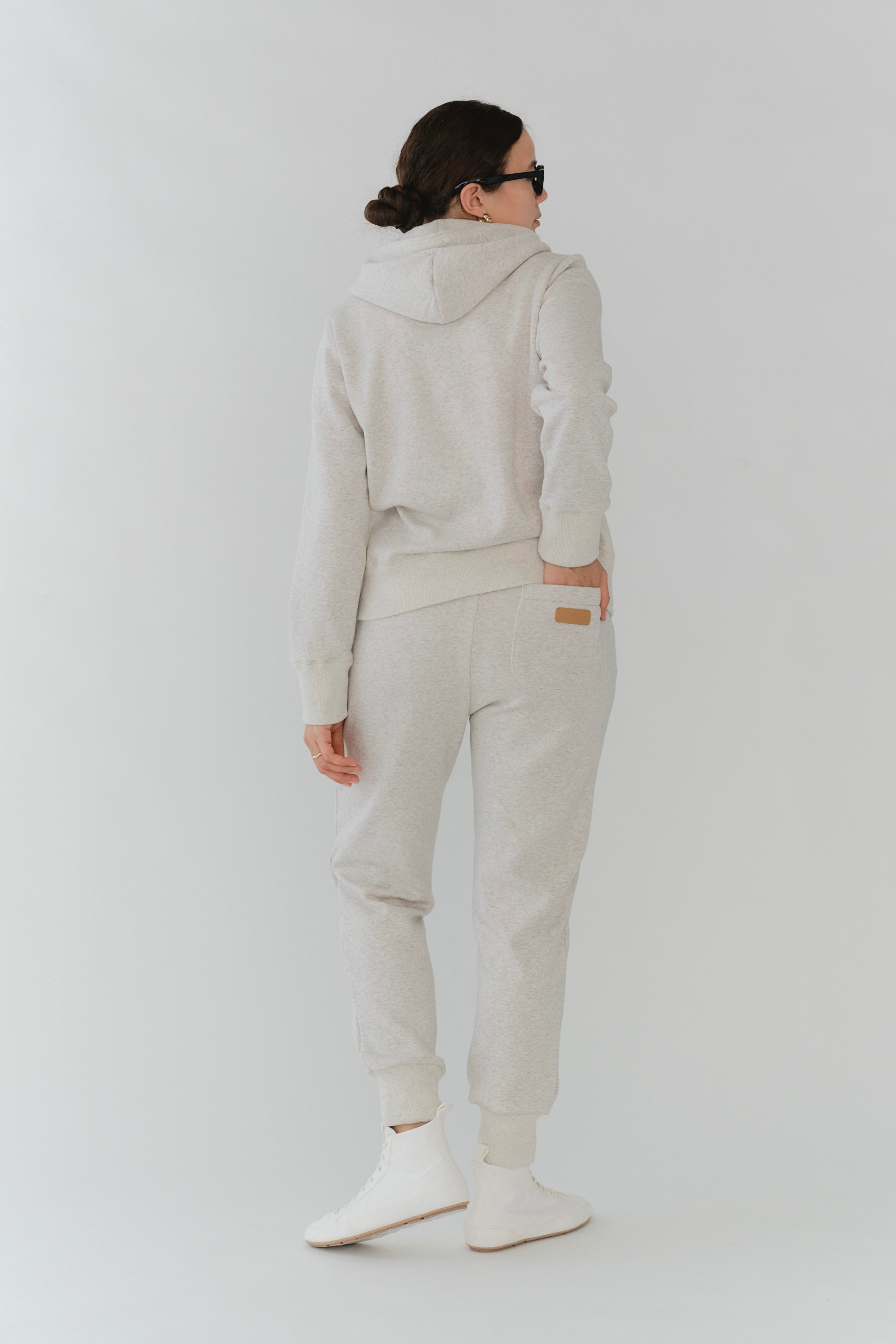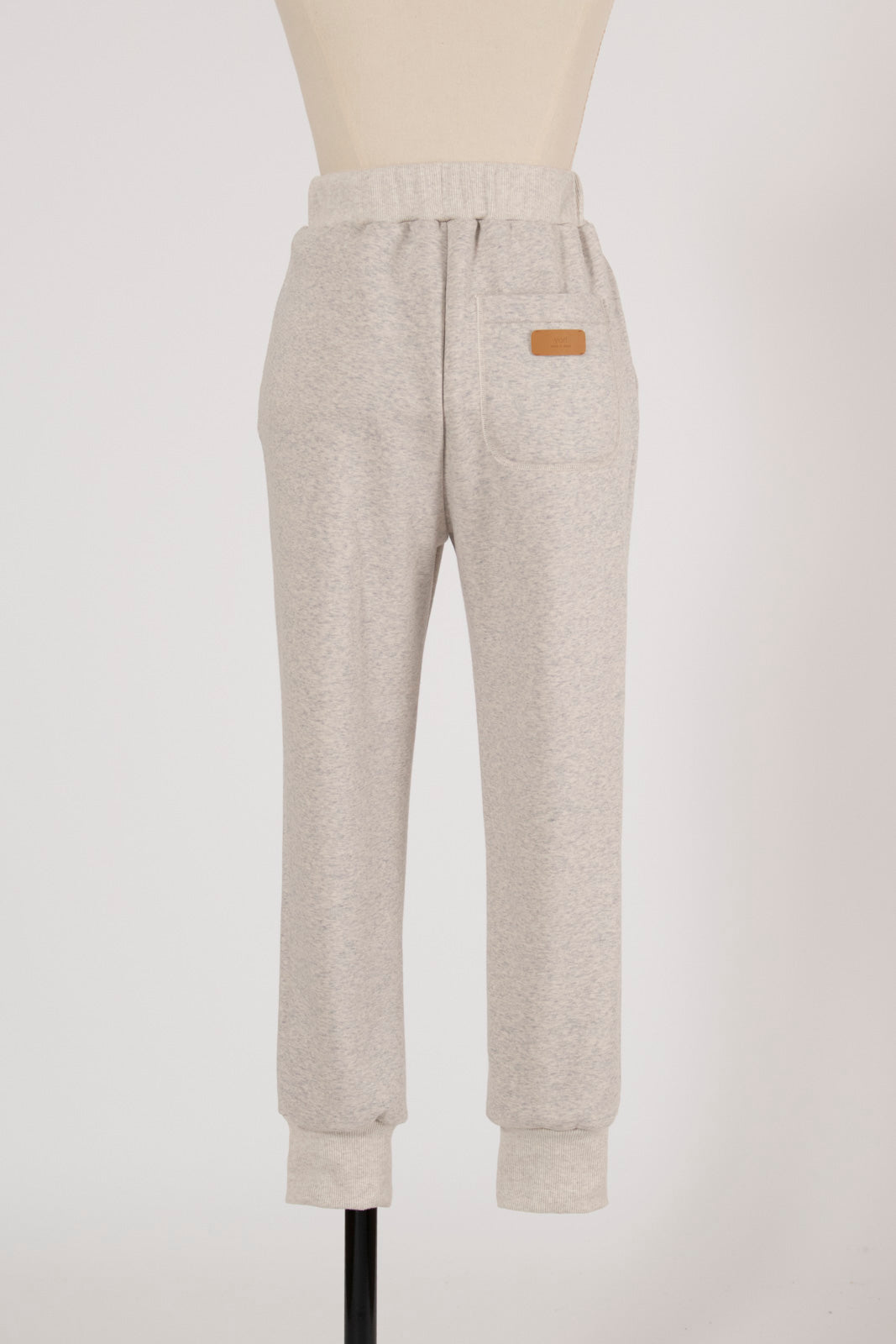 Introducing sweatpants that feel just like wearing a blanket. The lightweight, warm, and fluffy fleece lining is incredibly soft and cozy, making you want to touch it all day long. With excellent stretch, they offer outstanding ease of movement. The relaxed, comfortable fit with no tightness makes them perfect for days when you just want to unwind. The back pocket features an adorable yori original leather patch for a charming touch. Pair them with the matching hoodie for a complete set that keeps you warm and comfortable during travel or casual outings. Style them with a shirt or blouse for a sophisticated, effortlessly chic look. These are the winter essential pants you won't want to let go of all season long.