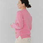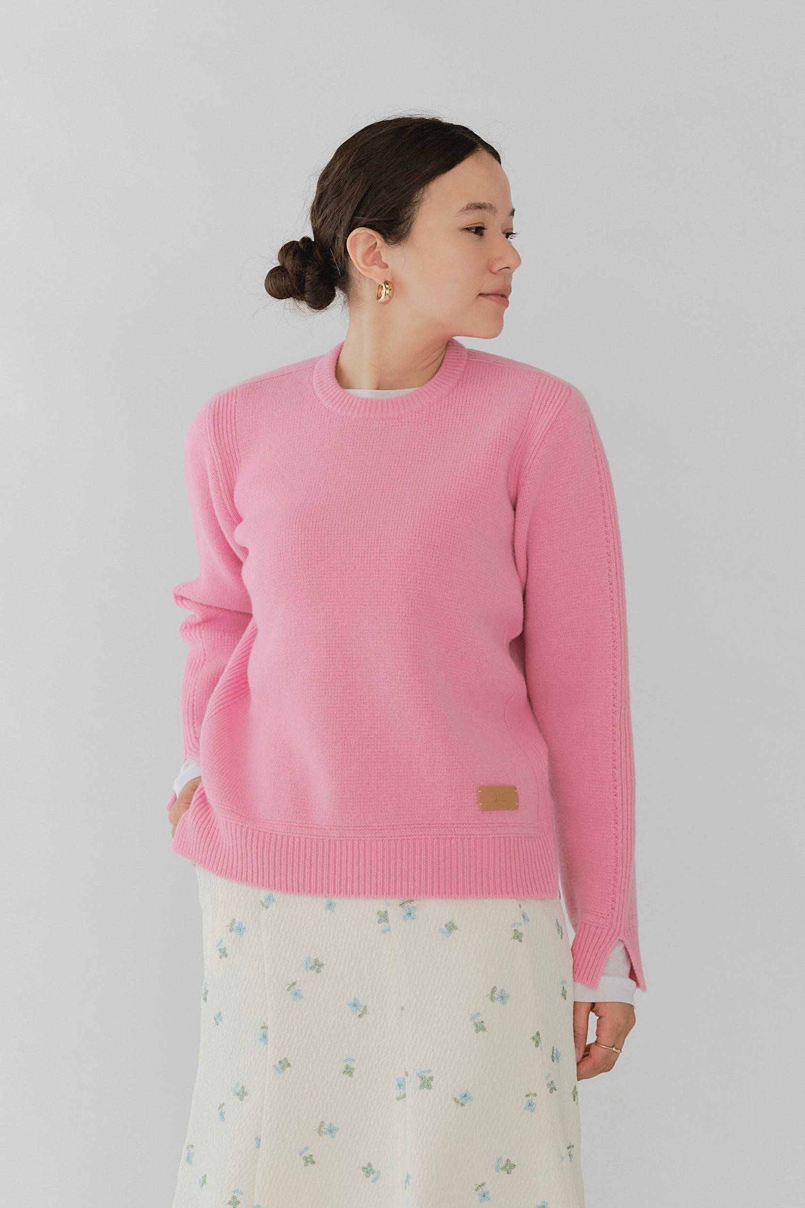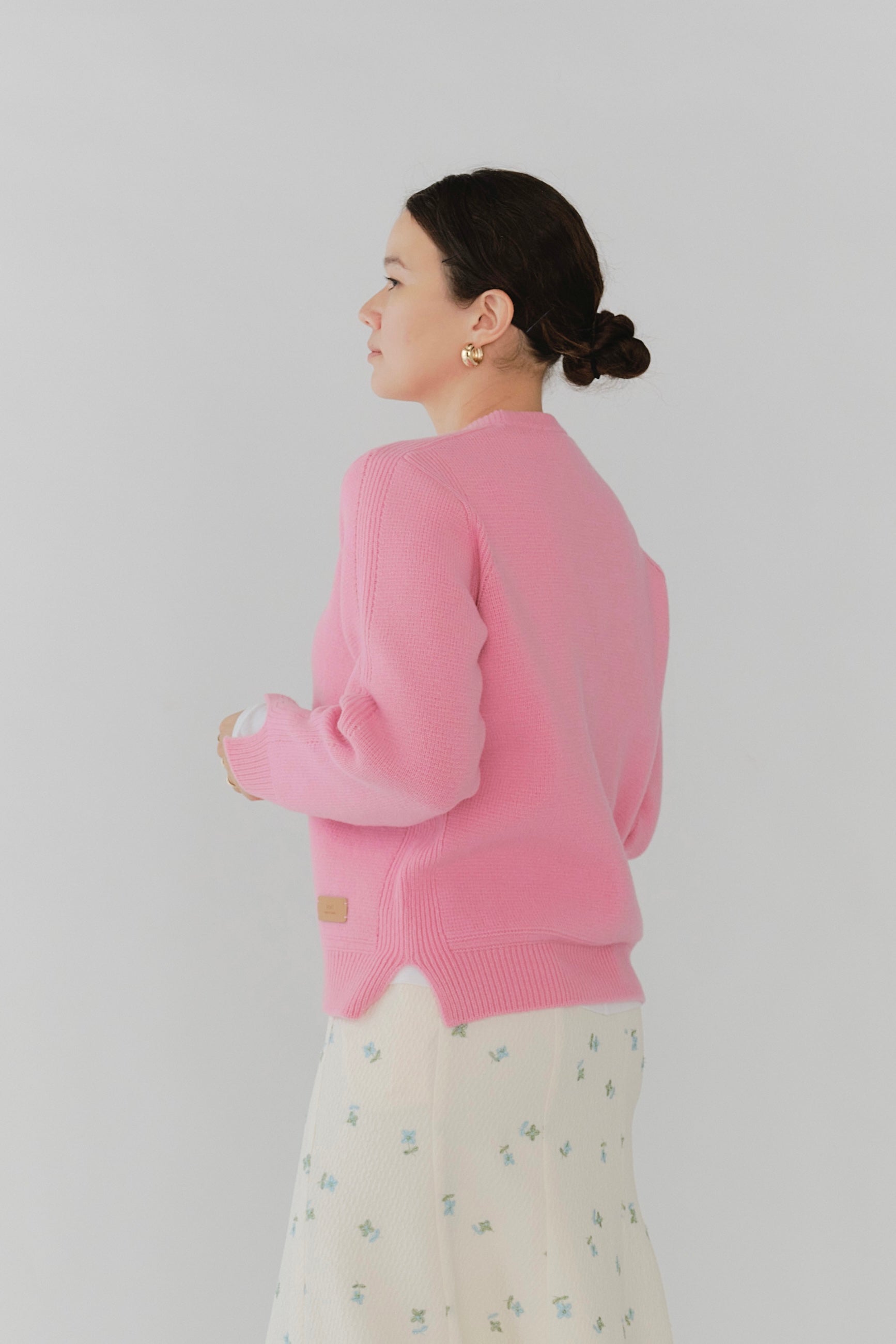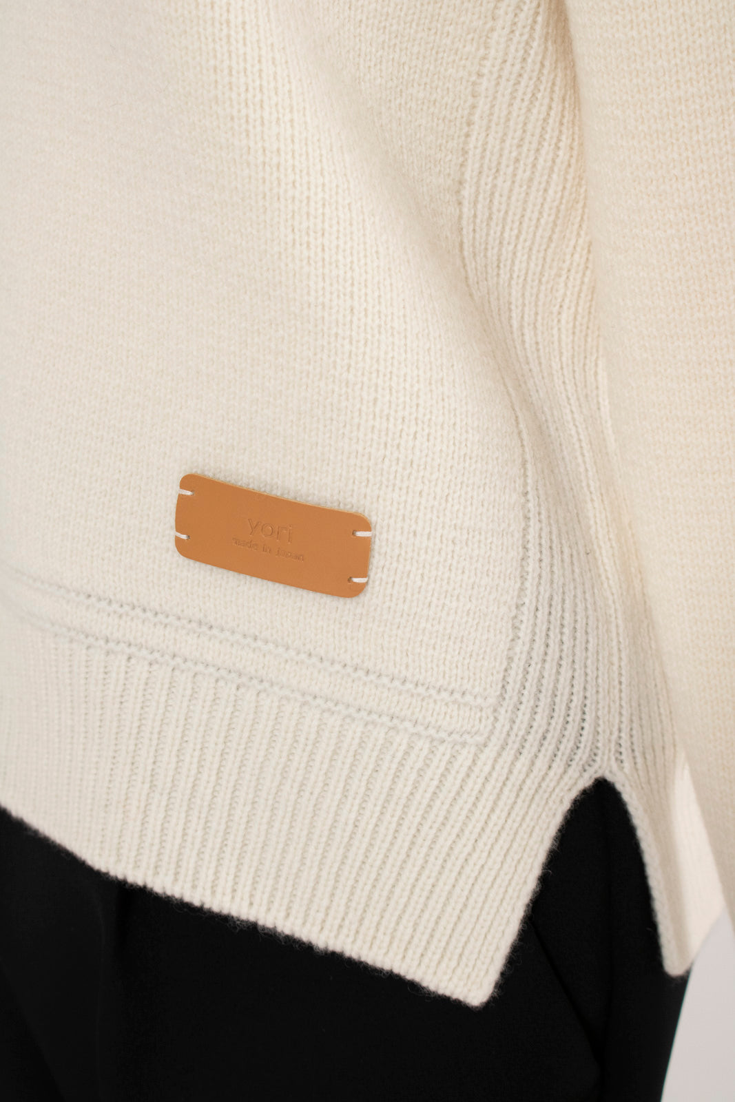 Made from 100% wool yarn with beautiful color vibrancy. Soft and warm, it's comfortable against bare skin without irritation. The front hem features an original yori logo label, adding playful elegance characteristic of the brand.