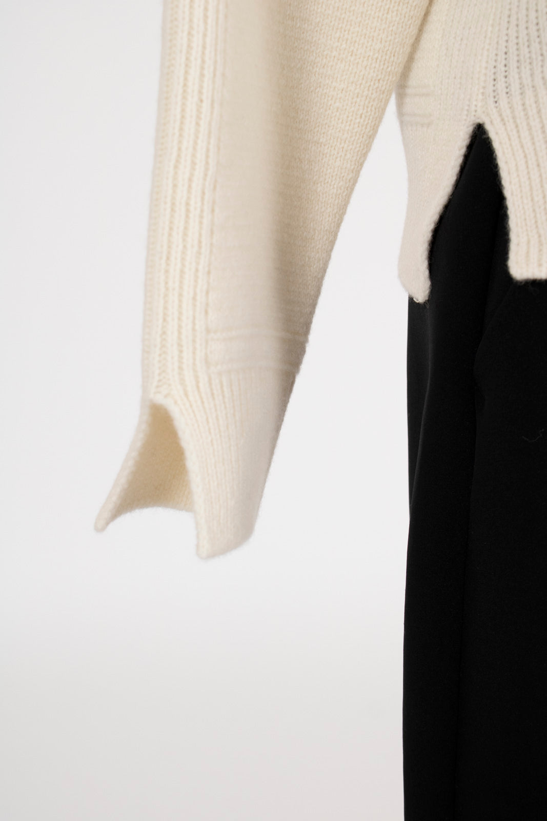 A premium knit with a simple yet refined impression, crafted with meticulous attention to detail. Vertical ribbed detailing running from shoulder to sleeve creates a flattering silhouette and striking design. Slits at the cuffs add a subtle relaxed touch to the hands, and simply rolling up the sleeves creates an effortlessly sophisticated look.