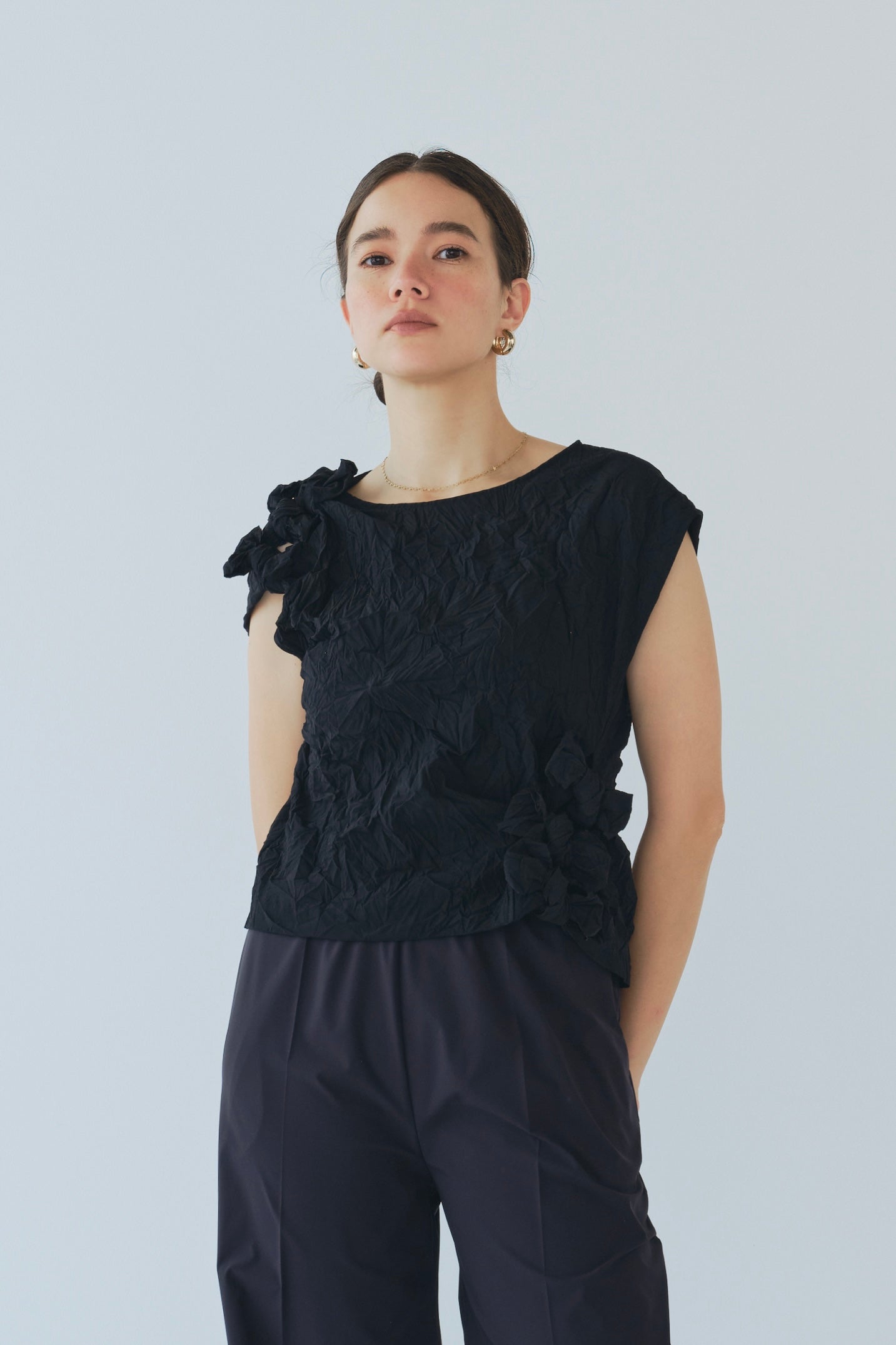 The naturally wrinkled texture eliminates the need for ironing, and it's machine-washable for easy care. Whether paired with denim for a casual look or with tailored pants for a polished ensemble, this versatile piece transforms to suit any style. A truly unique item that stands out with its charm and versatility.