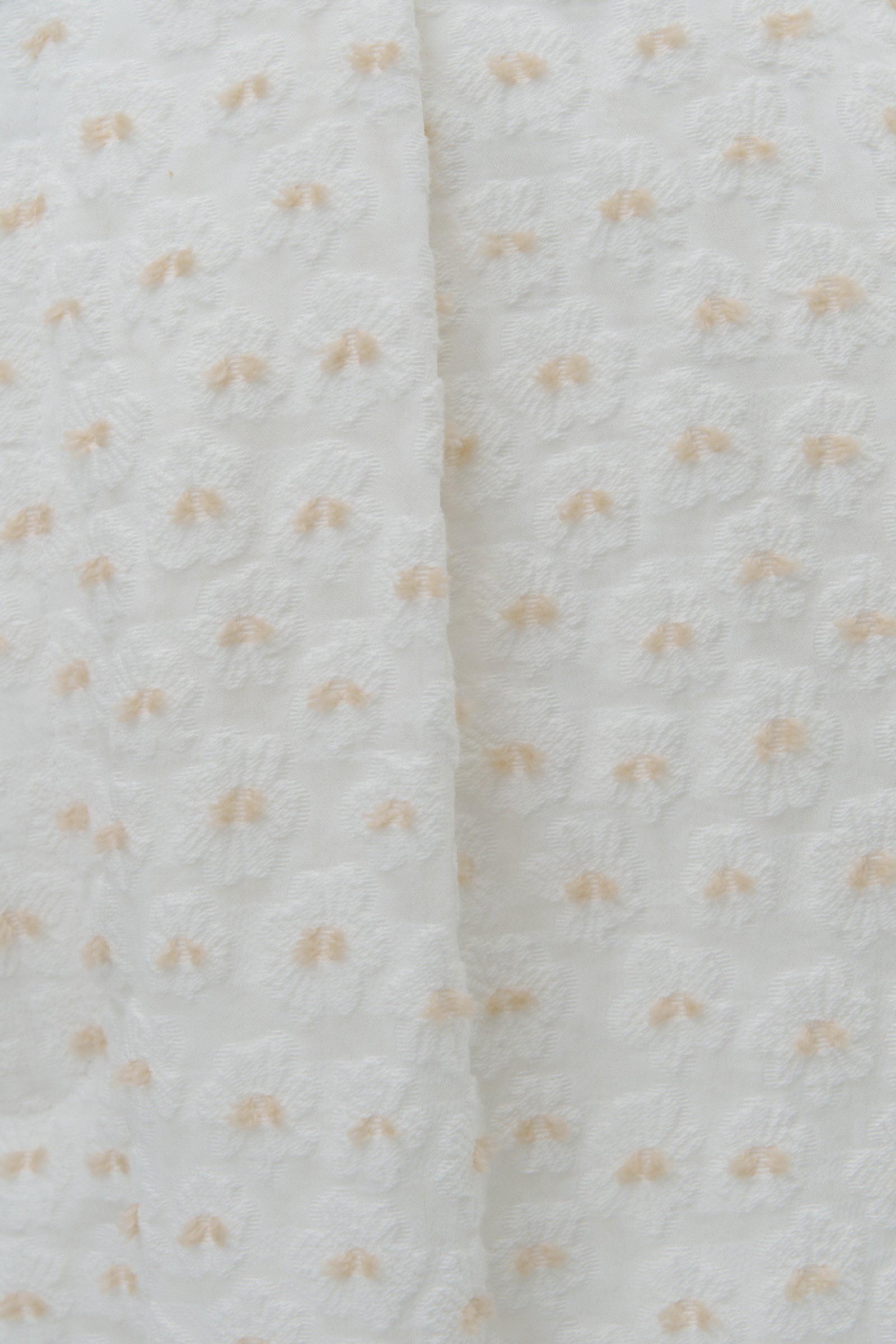 Beschreibung (DE): Diese Kamille-Straight-Pants sind aus "Shirocon" Original-Stoff gefertigt – einem leichten, transparenten Organza-Jacquard, der sich weich anfühlt und natürlich fließt. Mit hoher Taille, offener Vorderseite und elastischen Seiten bieten sie einen eleganten und raffinierten Look. Der Reißverschluss macht das An- und Ausziehen einfach.