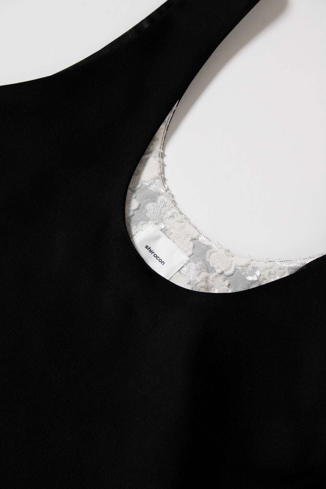 A delicate lace detail is subtly placed on the inside of the neckline, revealing itself only in fleeting moments. This small, hidden feature adds a playful touch that is distinctly shirocon.