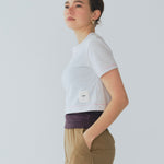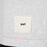 A playful cut-and-sew top adorned with colorful neps scattered throughout. The uneven base coloring adds a vintage-inspired touch, while the soft and smooth texture offers a comfortable feel against the skin. A fluffy, original patch by yori adds an extra dose of charm.