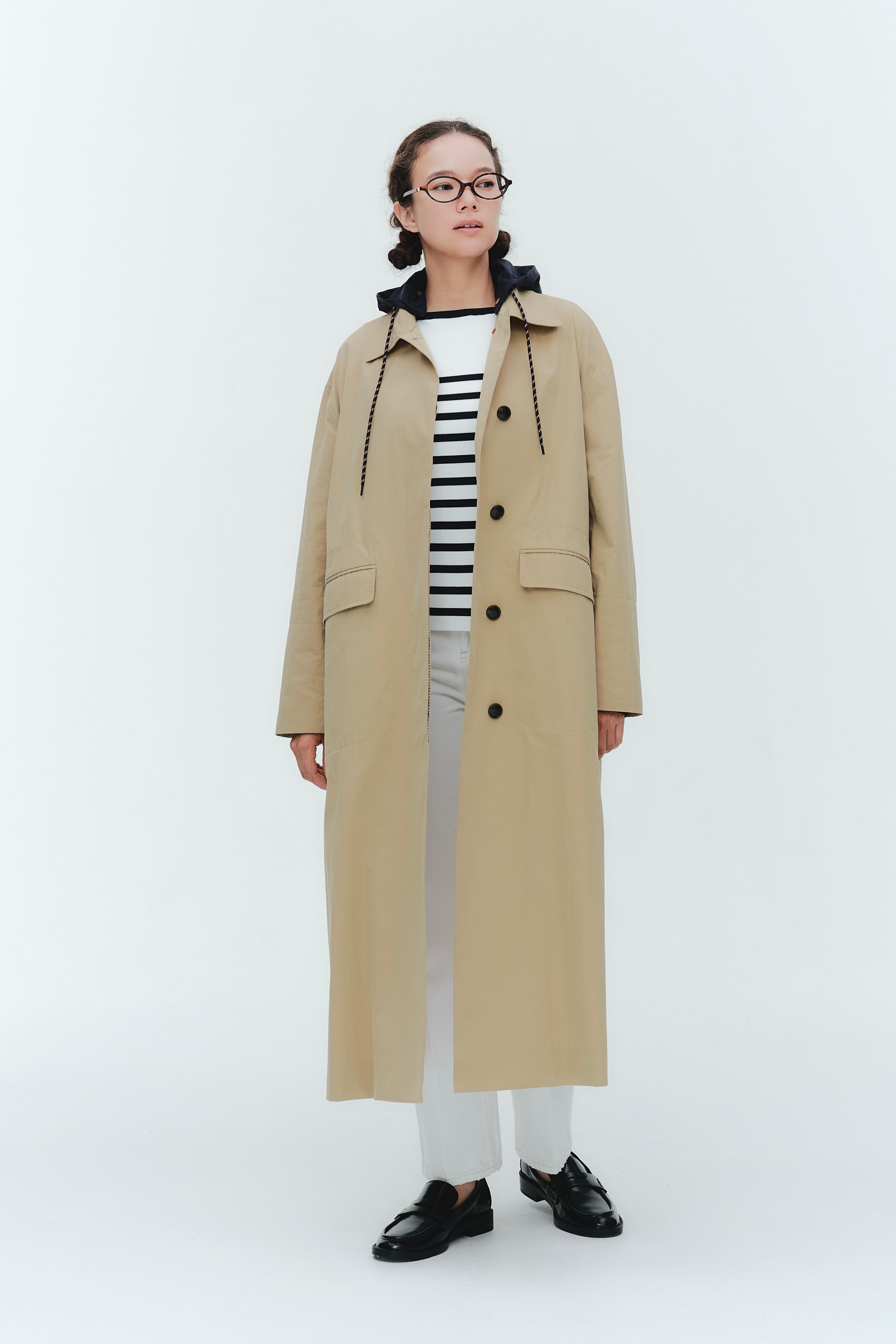 (yori) Hooded Single Long Coat
