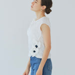 肩部和下摆处三条预先系好的缎带,增添一丝大胆优雅的气质,轻松打造时尚造型,是追求轻松造型人士的理想之选。宽领口完美凸显肩颈曲线,精心设计的廓形方便轻松穿脱,带来舒适贴合的穿着体验。